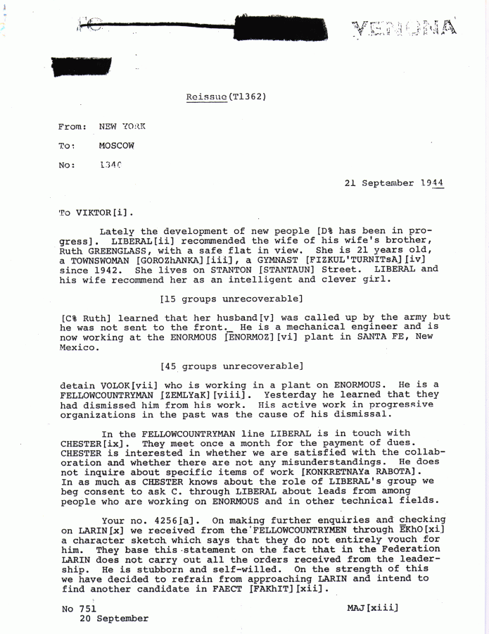 Tyson, Peter. Read Venona Intercepts. Secrets, Lies, and Atomic Spies. NOVA online. Accessed on 21 September 2015. http://www.pbs.org/wgbh/nova/venona/intercepts.html.